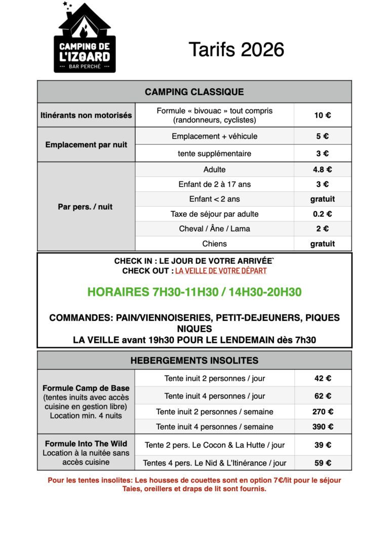 Pour les tentes insolites réservation par mail campingizoard@gmail.com